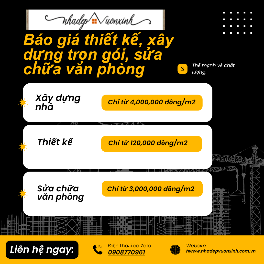 Báo giá thiết kế nhà đẹp, xây dựng trọn gói, sửa chữa văn phòng phường Thủ Đức: